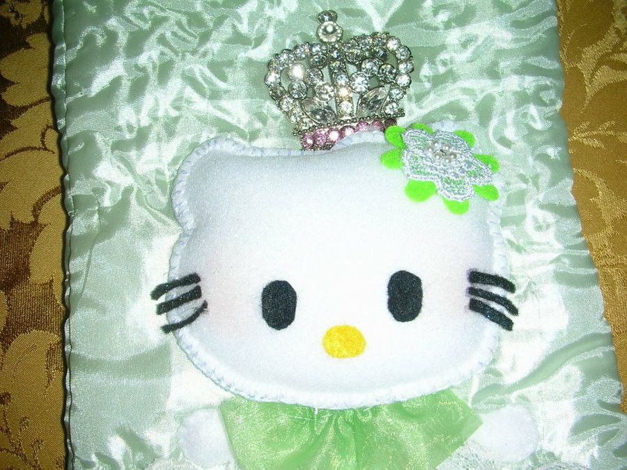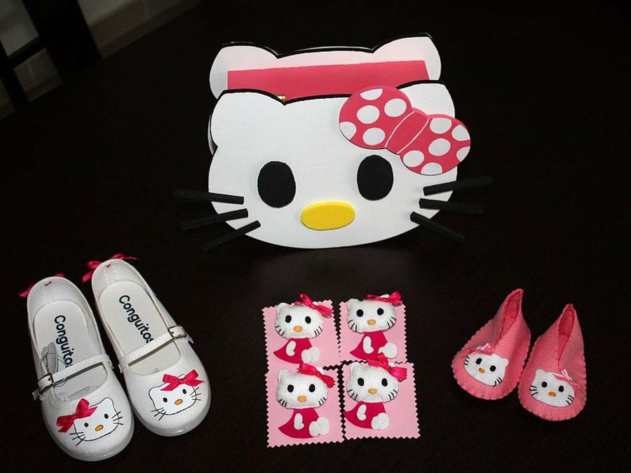 Su divertido lacito y esos ojos tan redondos y expresivos hacen las delicias de las niñas de todo el planeta. Blanca como la nieve, y vistiendo sus graciosos trajecitos, la Hello Kitty adorna un extensísimo catálogo de objetos que usamos a diario. Pero los mejores son los que diseñan y confeccionan nuestras lectoras, !veamos un divertido conjunto!