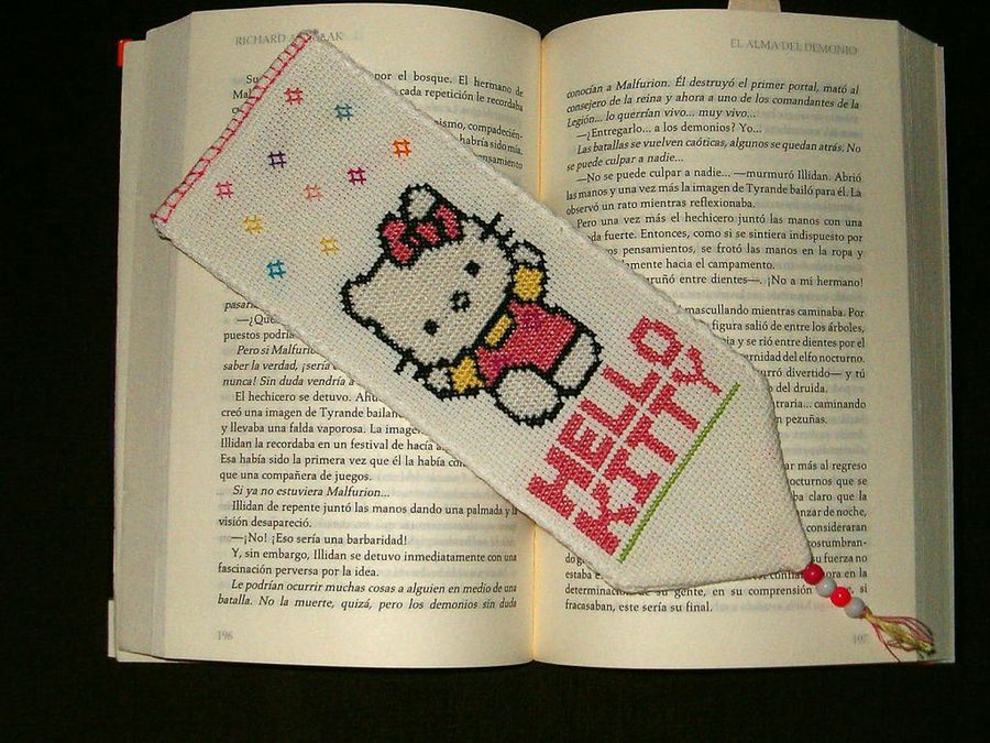 Finalmente, para las niñas amantes de la lectura, el mejor detalle Kitty será un marcapáginas ilustrado con el exitoso dibujo, y mejor aún si bordas la figura en punto de cruz, como hizo Thaisa. ¡Anímate a participar en el foro con tus creaciones personales!