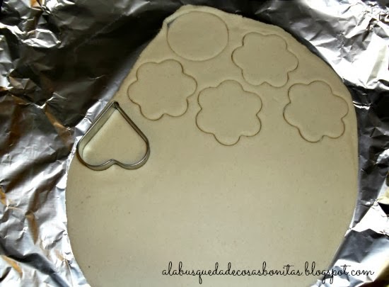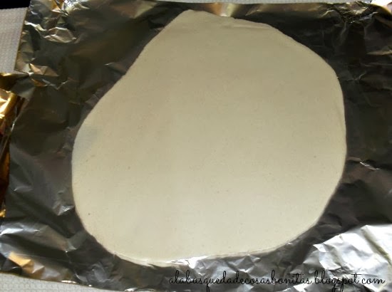 Cogemos papel de aluminio, y sobre la cara mate (la interior) es donde extendemos bien la masa con la ayuda de un rodillo. El grosor depende de lo que queramos, porque yo quería unos medallones finitos...