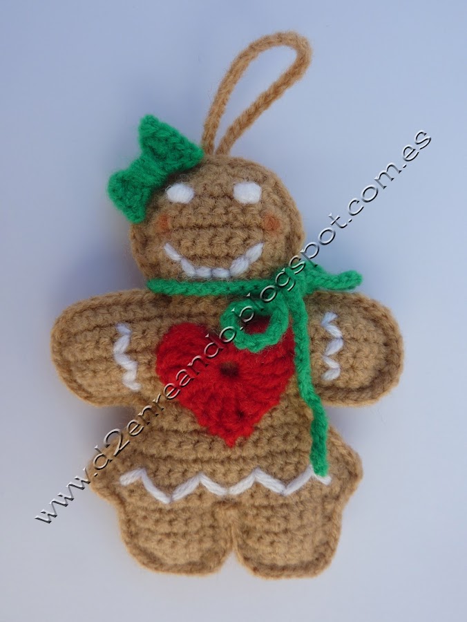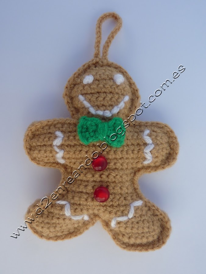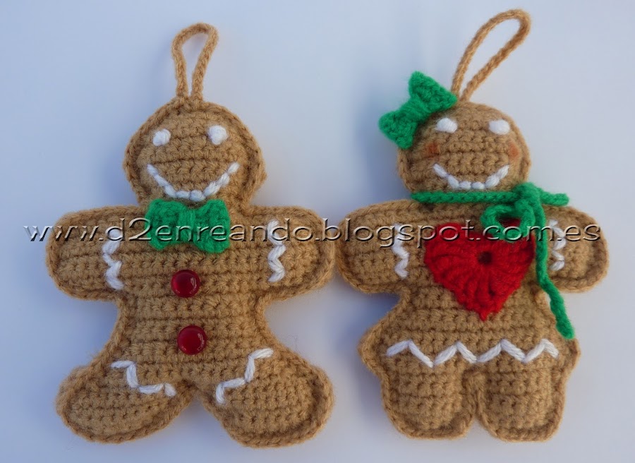 También para colgar en el árbol, estas galletas de Jengibre. Nosotras le tenemos especial cariño porque nos recuerda a la galleta de la película de Shrek. Están realizadas en ganchillo y las hemos hecho en dos versiones.