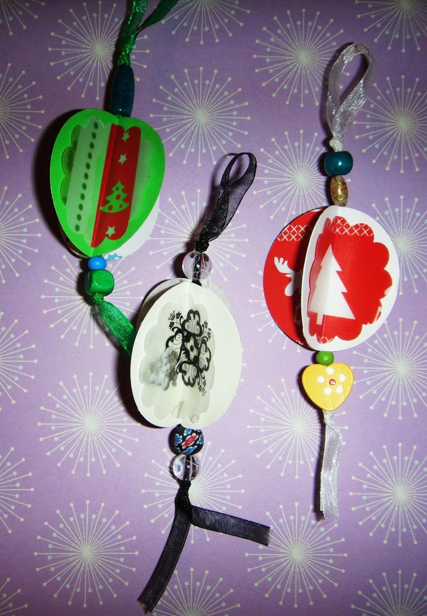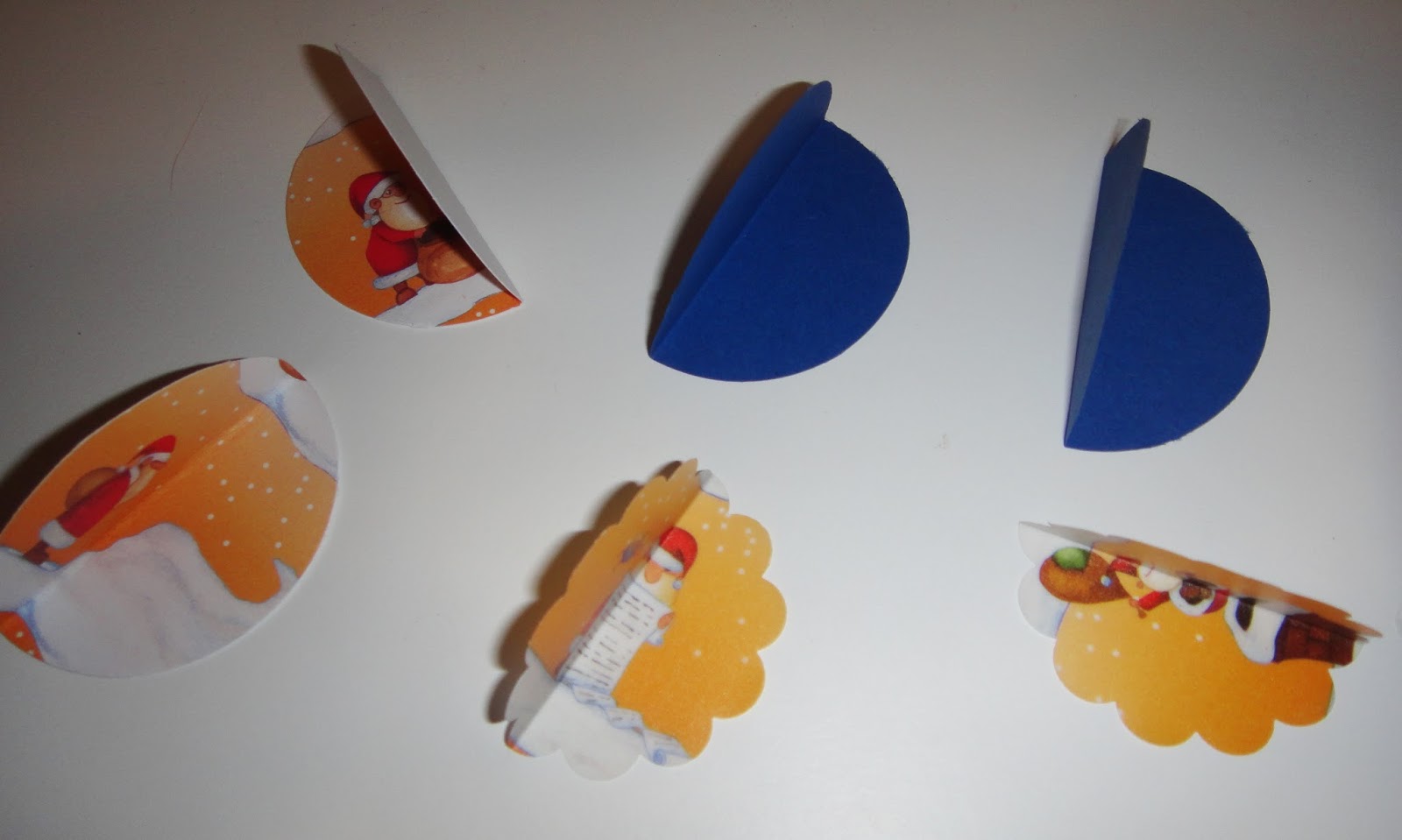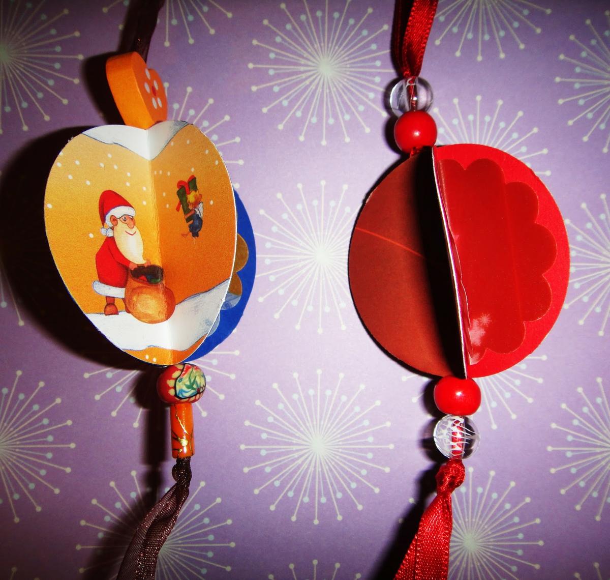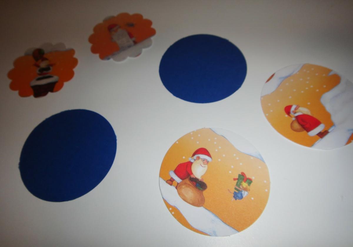 Si no tenéis este tipo de papeles, simplemente con cartulinas de estampado navideño, hacéis 4 círculos iguales para cada adorno.