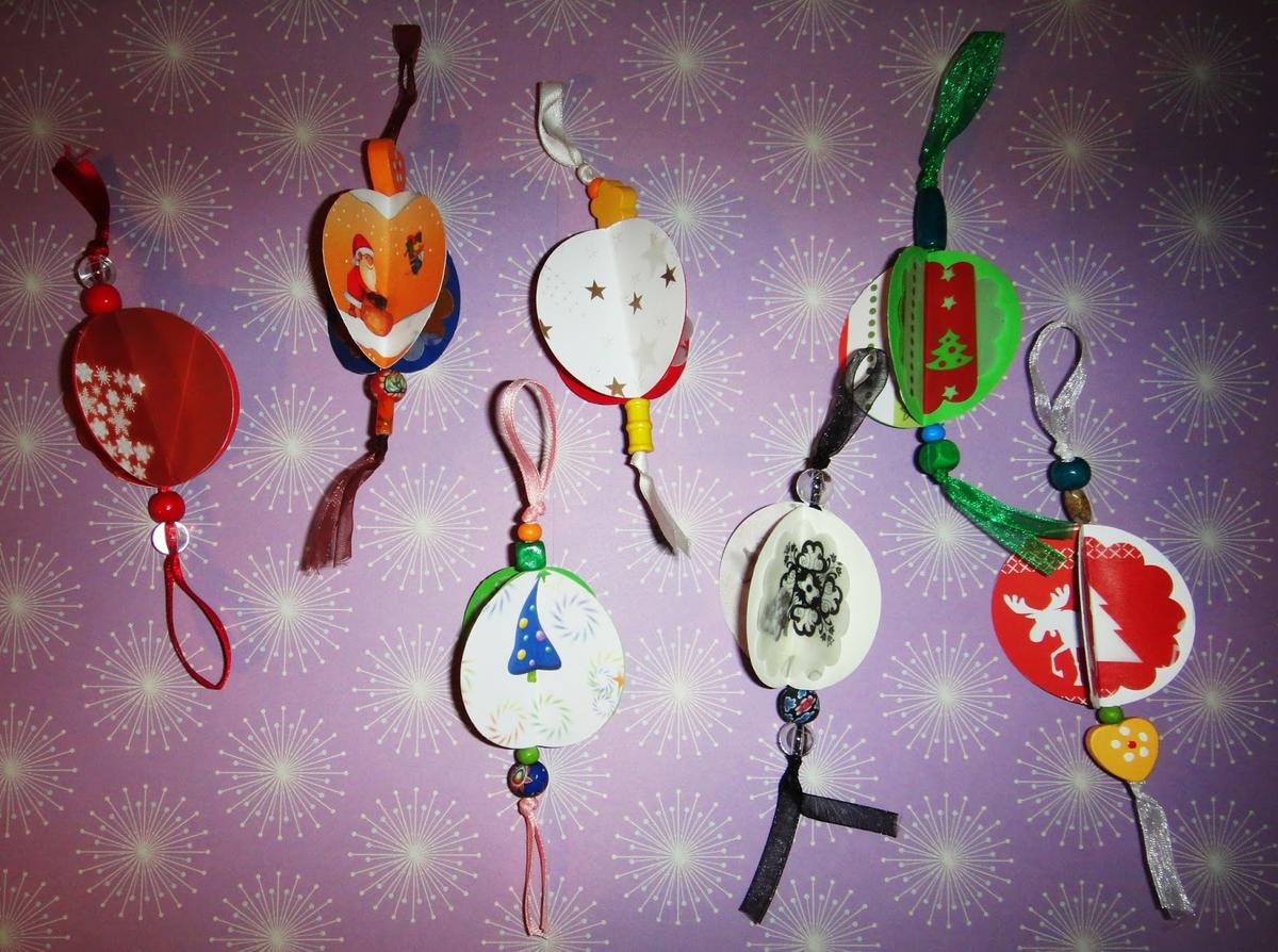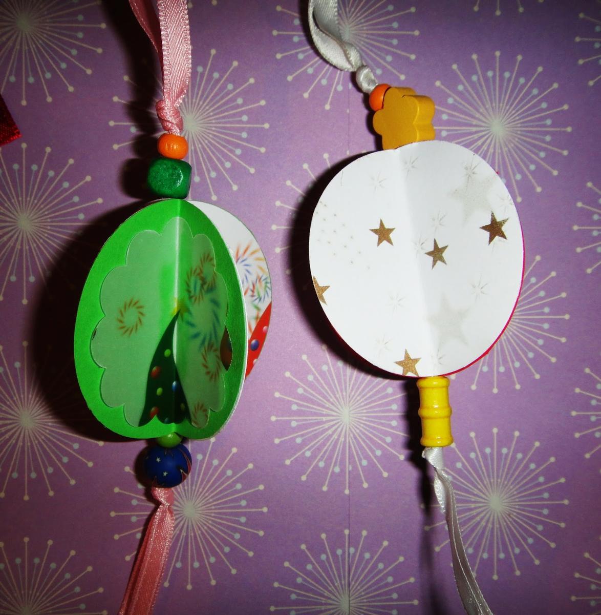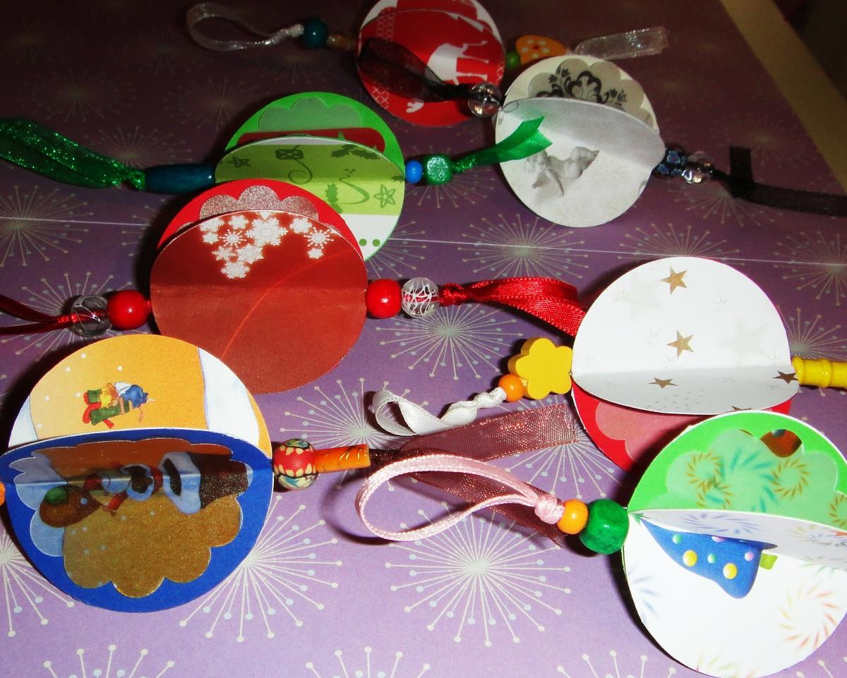 Si no tenéis este tipo de papeles, simplemente con cartulinas de estampado navideño, hacéis 4 círculos iguales para cada adorno.