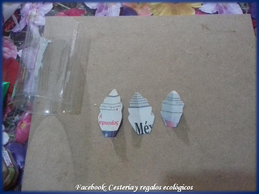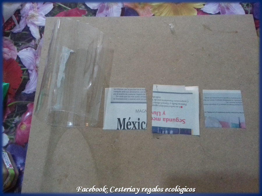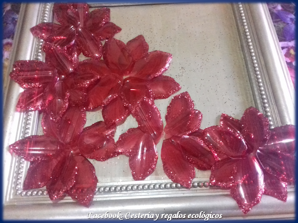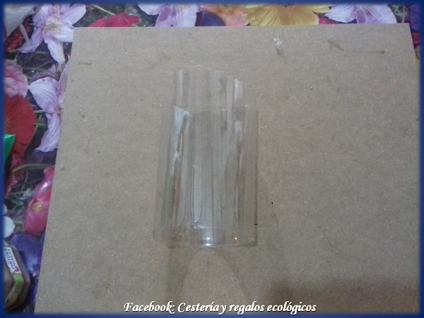 Para un cuadro grande, de aprox., 40 cms., de cada lado, necesitamos 4 botellas grandes de plástico desechable...