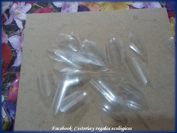 En base a los moldes, cortamos los pétalos en el plástico...