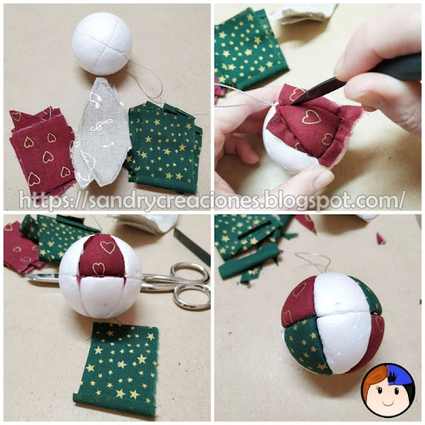 Para realizar la bola de Navidad con falso patchwork seguiremos estos sencillos pasos: