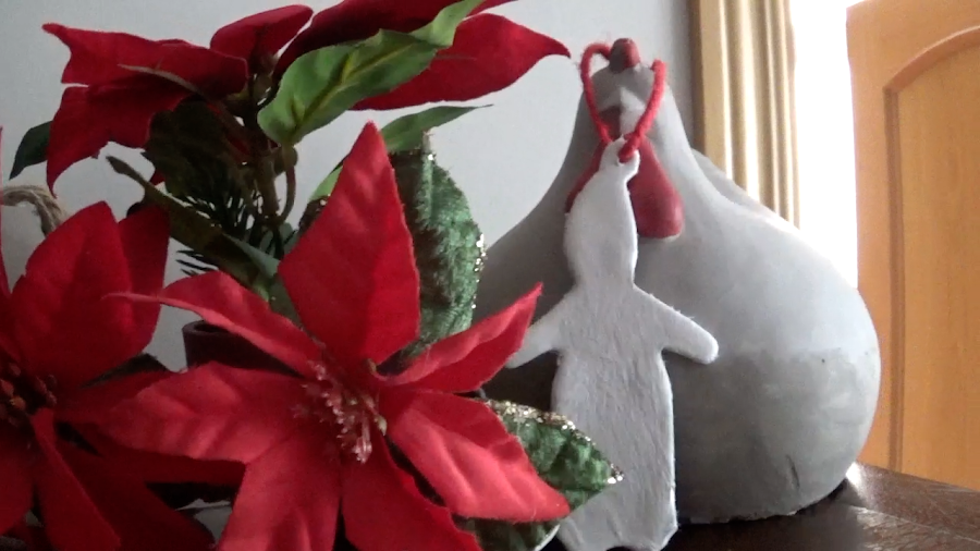 Esta pasta es un material que se trabaja muy bien, parecido a la plastifica, así que a los niños les va a encantar. La amasamos un poco para ablandarla y luego pasamos el rodillo para formar una plancha. Vamos posicionando los distintos moldes, a los que haremos un agujero en la parte superior para pasar la cuerda y podremos colgar. La dejamos secar 24 horas y a decorar...