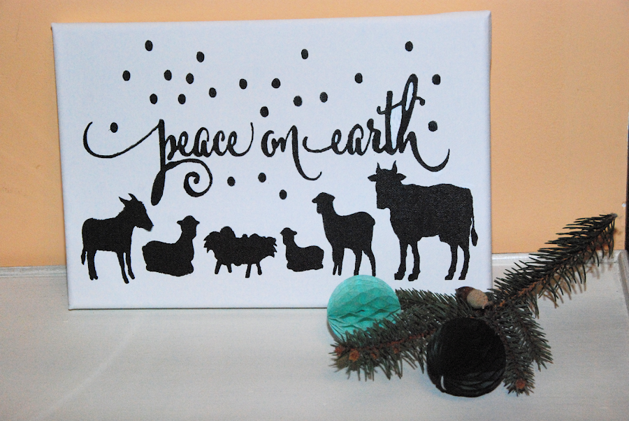 Con un lienzo, una plantilla, pegamento y purpurina, podemos conseguir unos cuadros con un toque invernal/navideño.