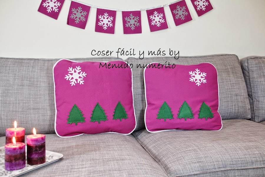 Compré la tela en Ikea aunque seguro que puedes encontrar una loneta similar en cualquier tienda de telas. Si sueles decorar tu casa en los tradicionales colores de la Navidad, rojo y verde, confecciona los cojines con estos colores para que hagan juego con el resto de adornos.