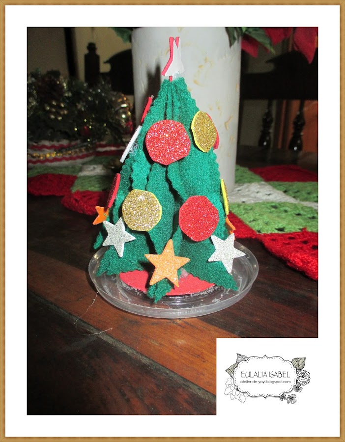 Feliz aniversario de Blog, amiga querida, q sigan muchos años mas. Te acompaño en este aniversario, con algunas cositas de navidad. Aqui en mi país, ECUADOR, celebramos la navidad, primeramente arreglamos el arbolito de navidad, los primeros dias de Diciembre,el mio, adornado con mis manualidades, tejidos, paño, telas, etc.no tengo adornos comprados. Toda la casa adornada con algún motivo navideño ...