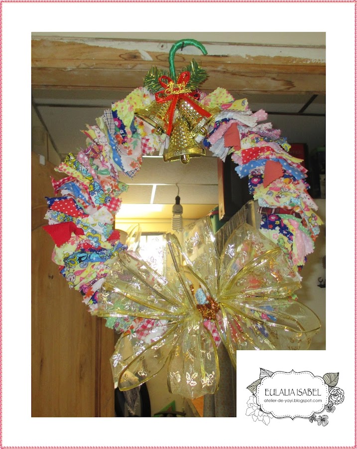 CORONA CON RETAZOS DE TELA, LAZO DE CINTA