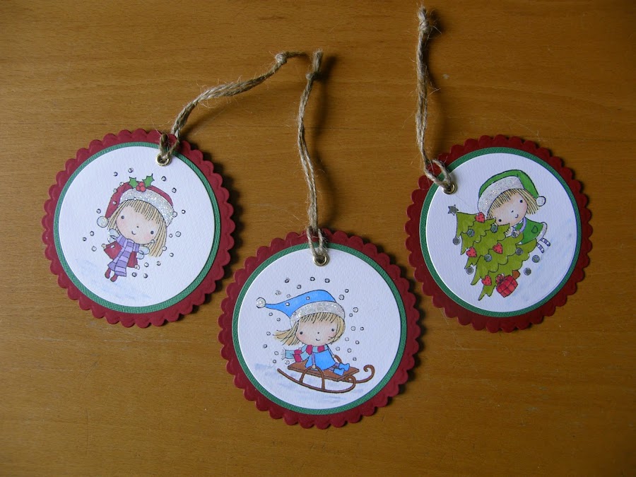Con unos sellos coloreados, papel troquelado y un cordón tenemos un bonito adorno Navideño.