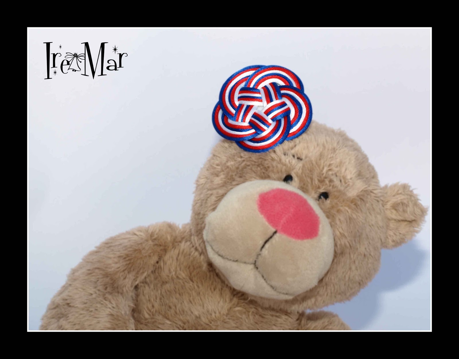 Nudo marinero de cola de ratón, blanco azul y rojo.