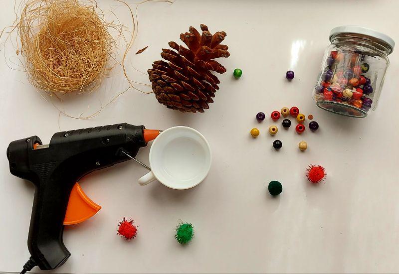 Como veis se ha buscado hacer algo fácil para poder hacer con niños. La pistola de pegamento seguramente se puede sustituir por otro pegamento si usarla con los más pequeños es un problema pero la verdad va muy bien para este tipo de manualidades.