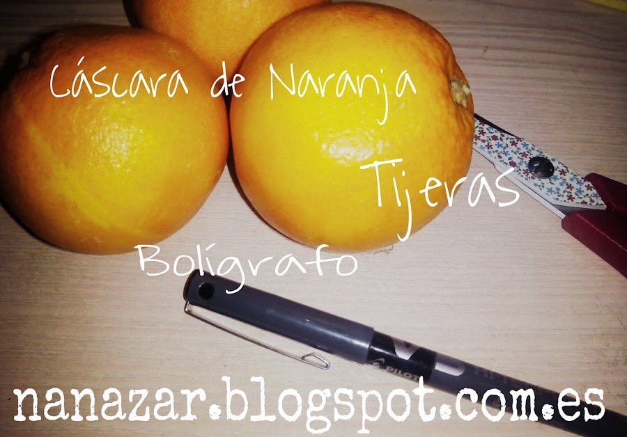 Necesitaremos lógicamente la cascara de varias naranjas, un bolígrafo que pinte sobre esa superficie y unas tijeras. Recomendación: si tuvierais moldes navideños os prometo que sería mucho más sencillo, pero como yo no tengo... me toca hacerlo a mano.