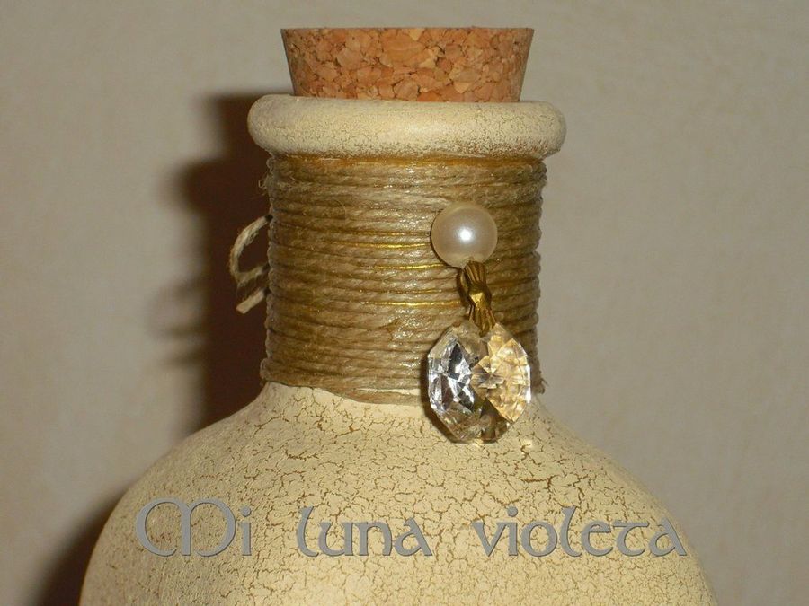 Como retoque final, a Jerez le gusta forrar el cuello de la frasca con una guita, ese fino cordel que suele emplearse en la cocina. Para que no se desprenda, la guita va fijada con alkil. El detalle hace un bonito contraste con la refinada textura craquelada.