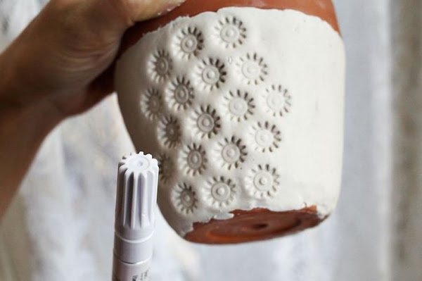 La arcilla la compré en Dideco, la pintura en Delipapel y el cordón de cuadritos en La Caravana Rosa: