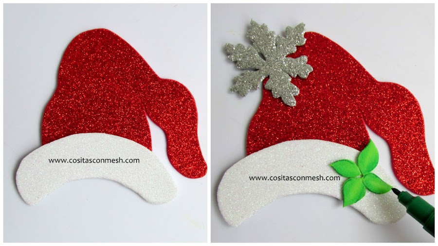 Paso 1 .- Tranfiere todos los moldes sobre el foami, luego recortamos y procedemos a armar el gorro de papa noel.