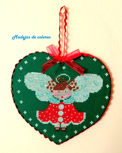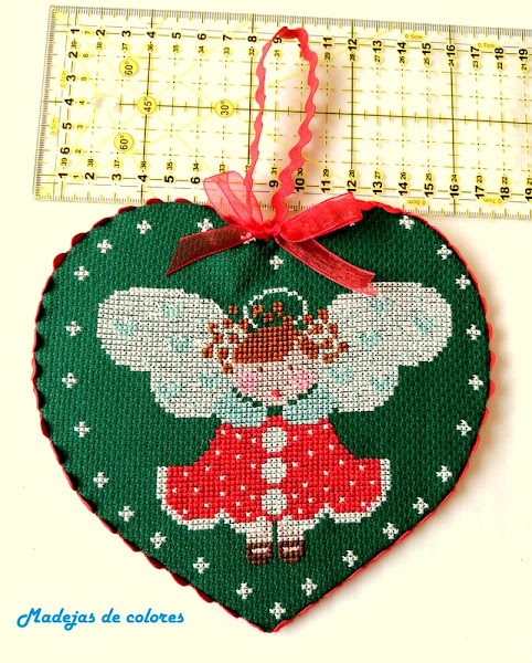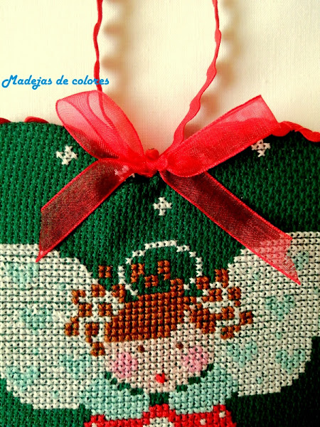 El primero se trata de un simpático angelito a punto de cruz, sobre fondo verde, diseño de Carolina de "Cuore e batticuore".