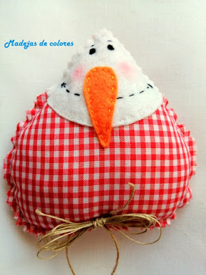 Le he colocado una piculina roja alrededor y para colgarlo, y como detalle un alfiler terminado en una piedrita roja para sujetar todo y lazo de organza.