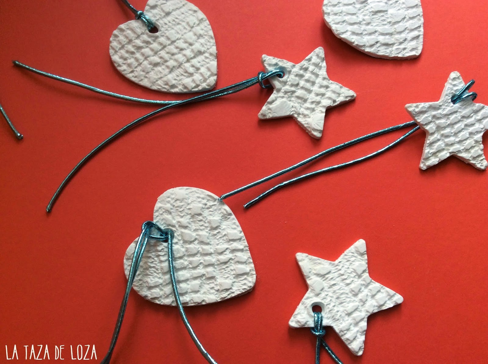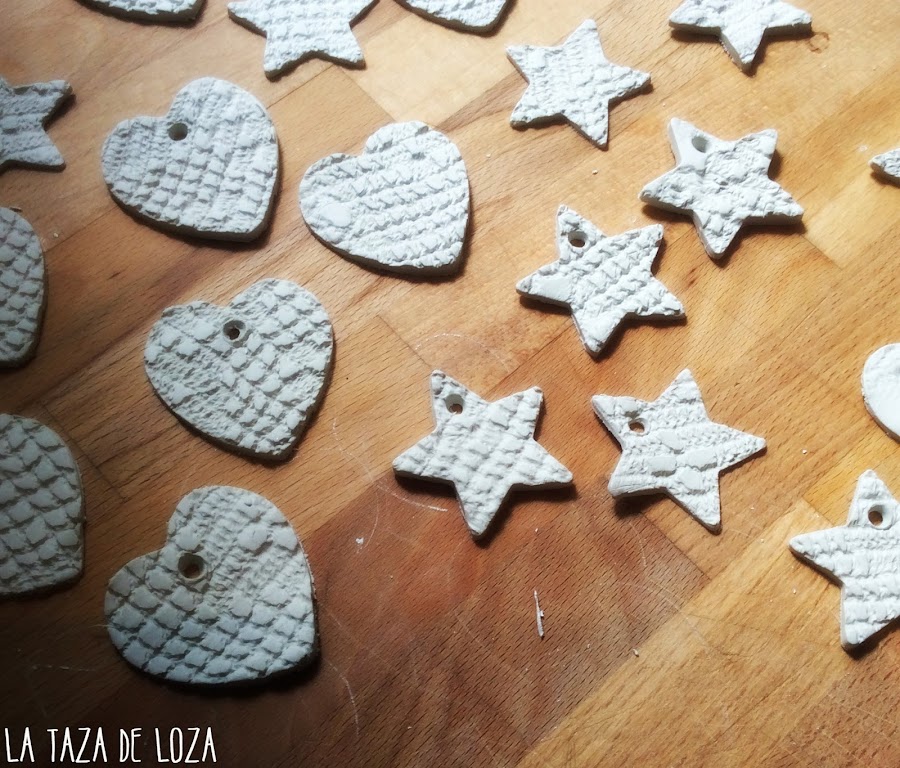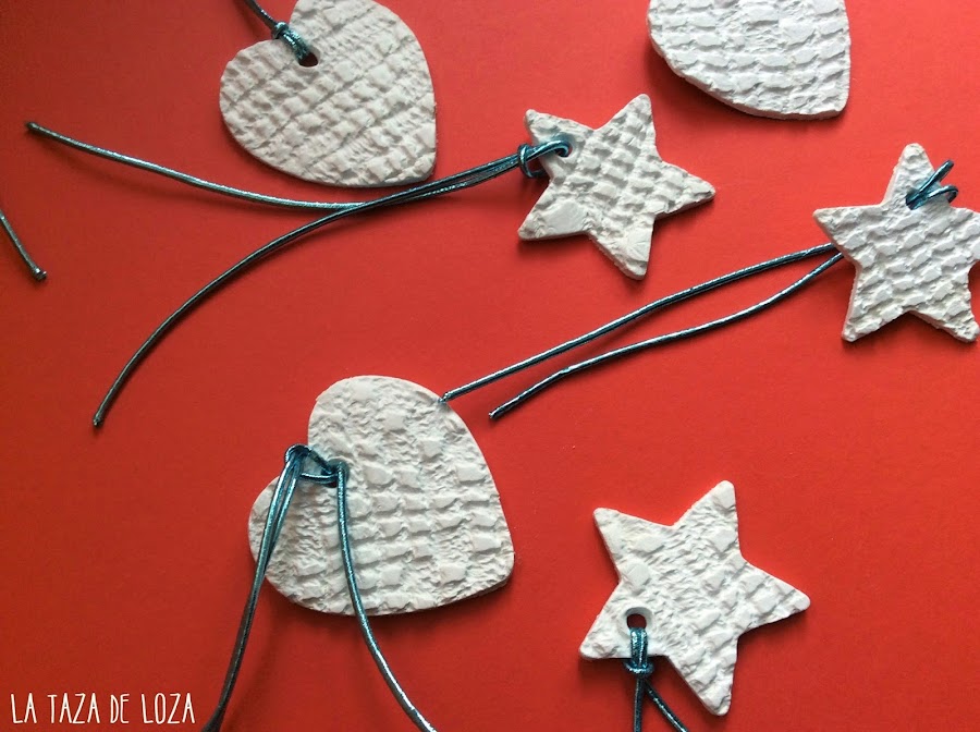 Cuando ya están secas se pintan, yo las pinté de color blanco, pues el blanco de la pasta era "poco blanco". Pero de rojo o de dorado o plateado para el árbol estarían muy monas también... la imaginación es libre.
