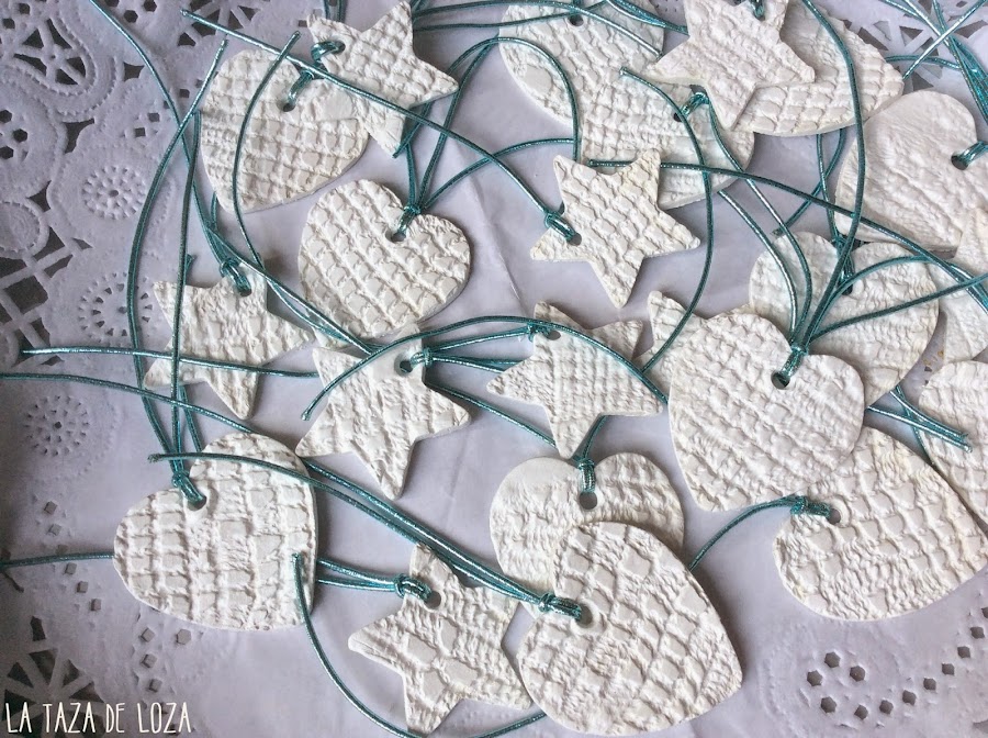 Solo hay que tener la pasta blanca, se compra en cualquier tienda de manualidades o papelerías buenas, lo de buenas significa, bien surtidas. La pasta cuesta 2 â?¬, la pintura blanca acrílica o del color que se prefiera 1,50 â?¬ aproximadamente. Pero con estas cantidades pueden salir cerca de 200 adornos, yo con un tozo pequeño hice 30. No se tarda nada. Solo hay que dejarlo secar cerca de una ventana de un día para otro colocadas en una bandeja grande (tipo las del horno) y listo.