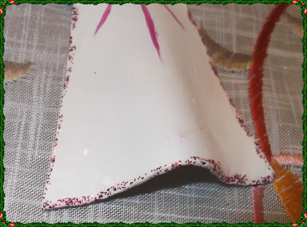 Todo alrededor llevan adornos realizados con pegamento y purpurina de colores.