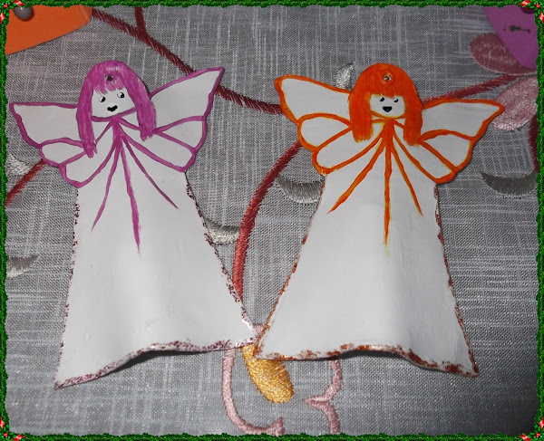 Estos angelitos los hice con la pasta de papel, que os he mostrado en alguna ocasión, moldeando la forma,dejándolos secar, y luego pintarlos con acrílicas.