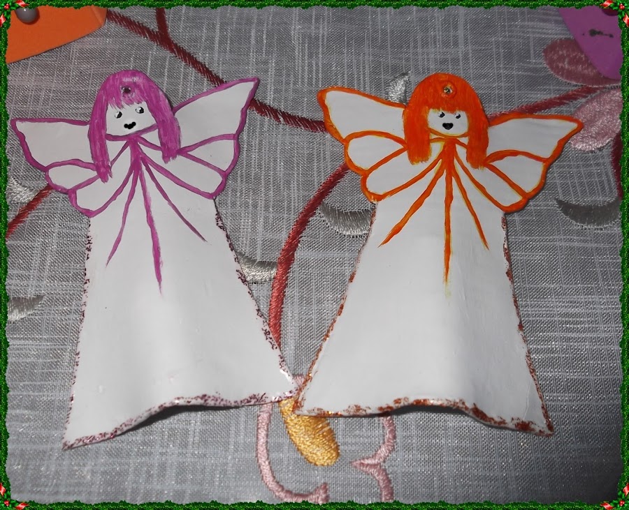 También os enseño unos angelitos que he hecho con pasta de papel.