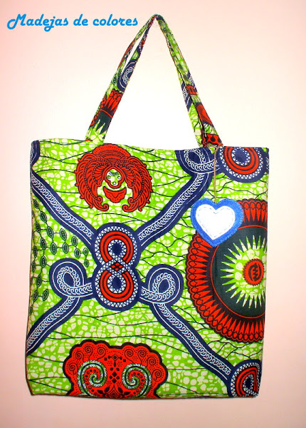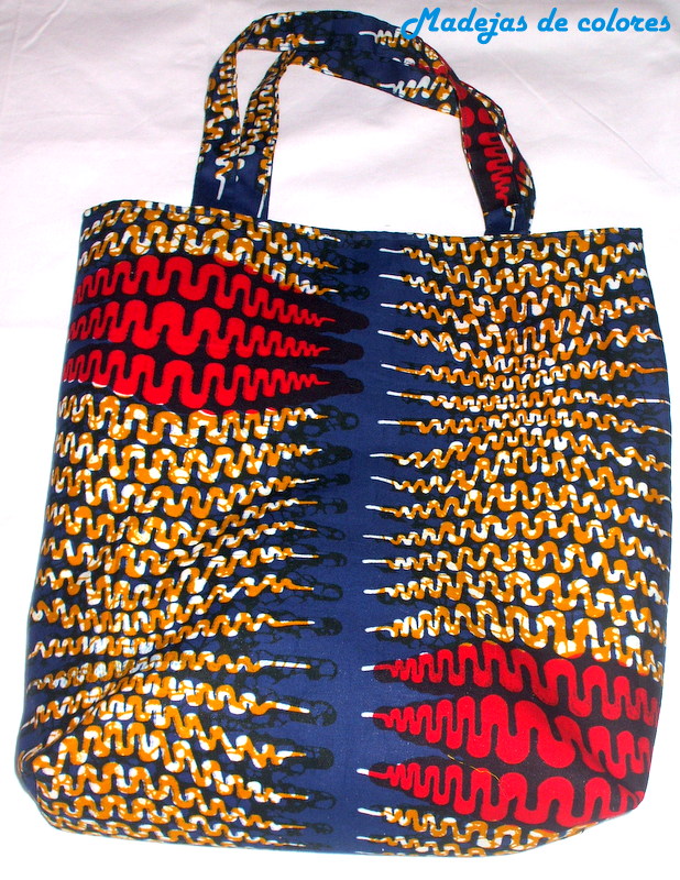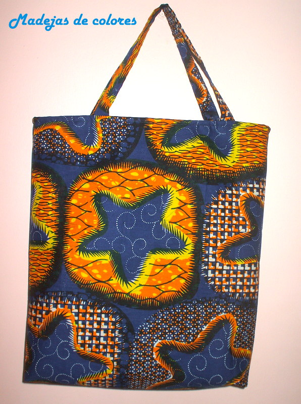 Se trata de unos sencillos bolsos, con telas africanas que me proporcionó la clienta. Al ser con tanto color y dibujos grandes, no requiere mucho adorno.