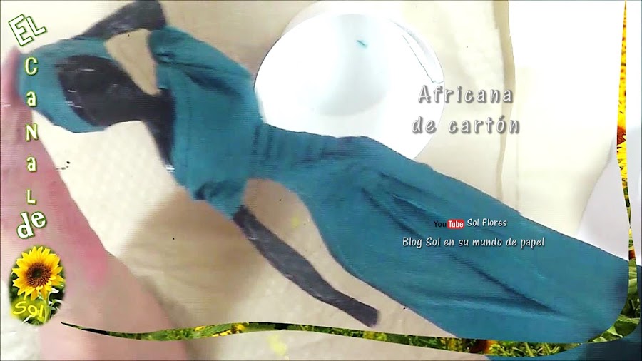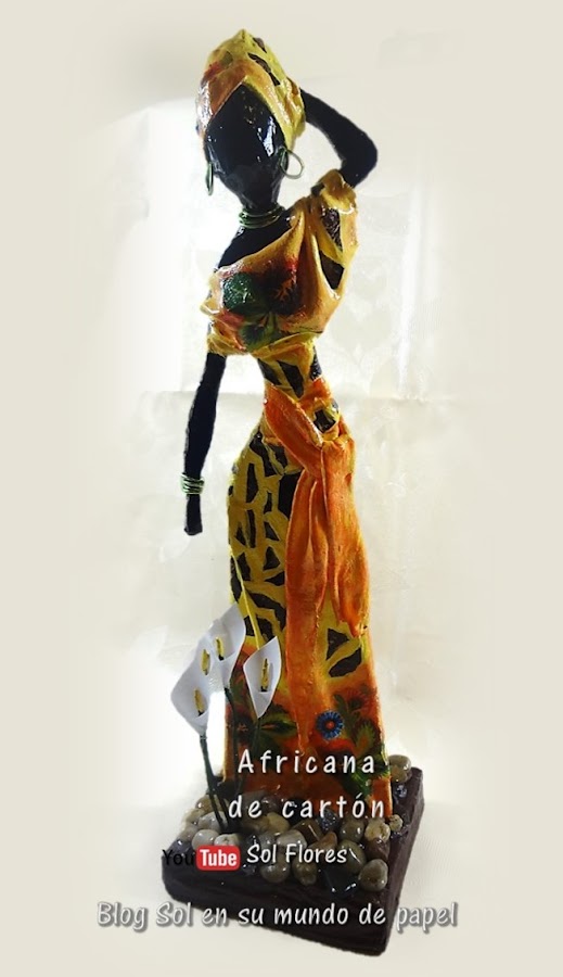 Y así nos debe quedar, le puse collar y aretes con un alambre de aluminio verde, rocié con barniz en aerosol y listo, miren qué bonita nos ha quedado nuestra africana