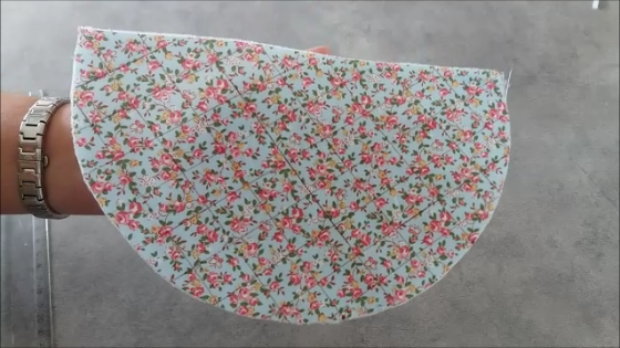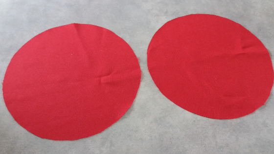 Utilizando los patrones vamos a sacar 4 piezas de telas: 2 circulares y 2 semicirculares.
