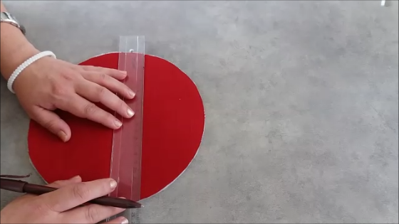 Ahora vamos a marcar unas líneas horizontales y verticales en una de las piezas circulares, de manera que nos quede así: