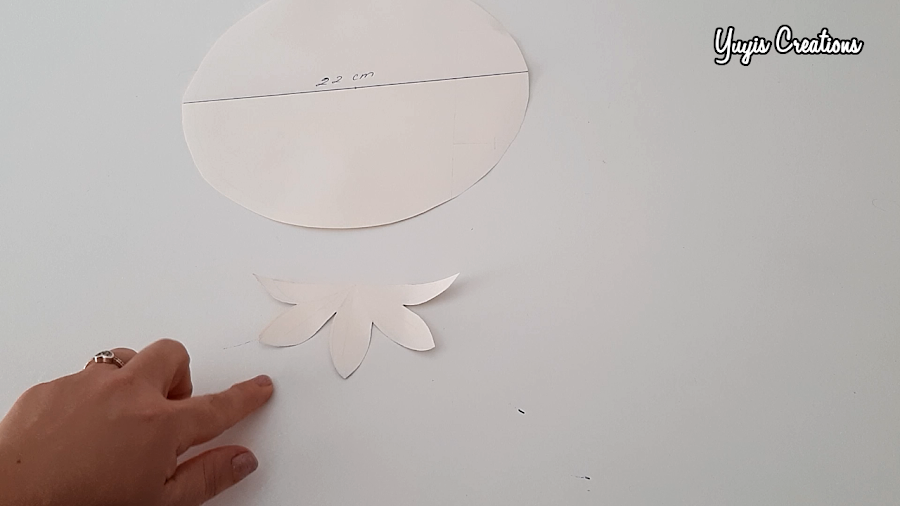 Empezamos sacando el patrón, para lo cual dibujamos y recortamos en la hoja de papel, un círculo de 22 cm de diámetro.