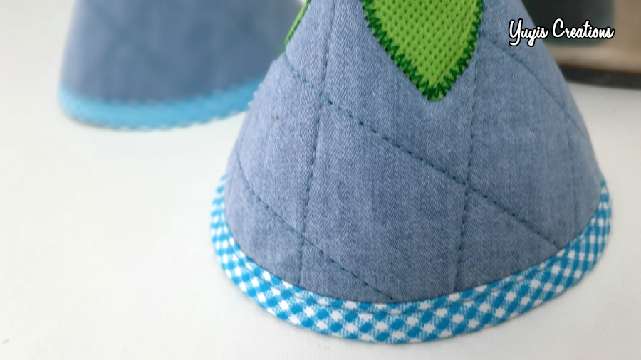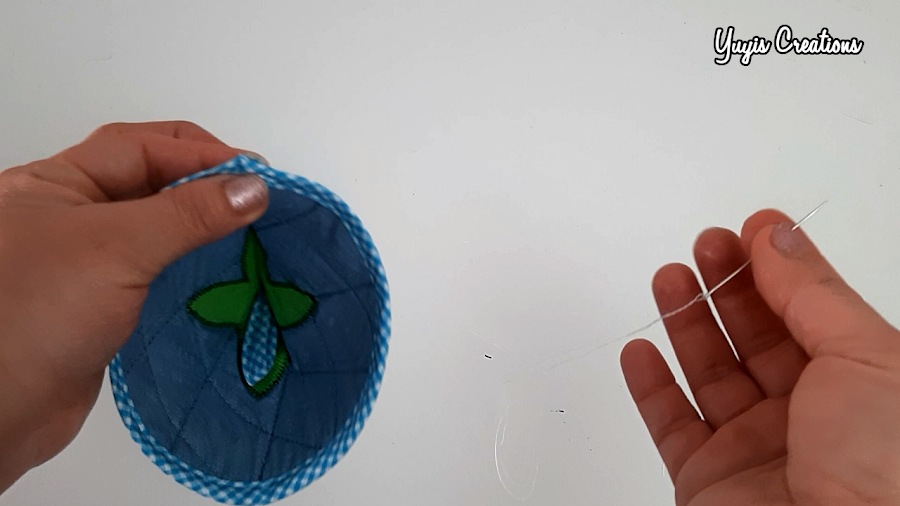 También dibujaremos y recortaremos unas hojas que coseremos a modo de aplique para que nuestro agarrador se vea más vistoso y más bonito aunque este paso de las hojas te lo puedes saltar si quieres.
