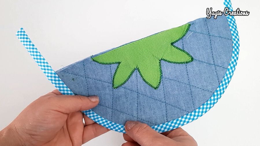 Entonces para empezar a hacer nuestro agarrador vamos a doblar y a cortar a la mitad nuestra pieza de tela para obtener dos semicírculos iguales.
