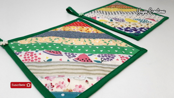 No sé cuantas personas se identifican conmigo pero yo lo suelo guardar todo! Incluyendo los retales de tela (tengo una cesta llena) y de vez en cuando me gusta usarlos para crear cositas chulas, en este caso hice unos agarradores de ollas usando además una bayeta de cocina.