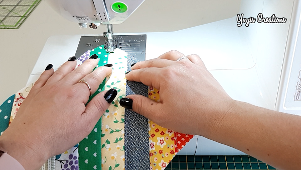 Ahora pasamos un costura por cada una de la uniones de las telas, así como ves en la imagen de abajo. O puedes dejarla así según tu gusto.