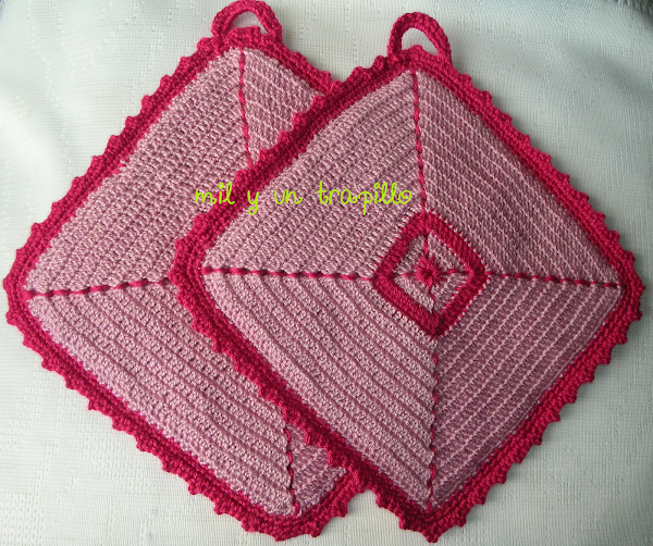 Agarradores de cocina de doble cara, muy útiles para coger ollas, fuentes de horno..., espero que os gusten.