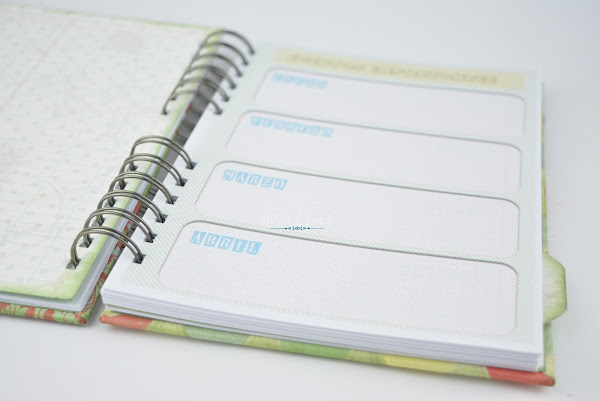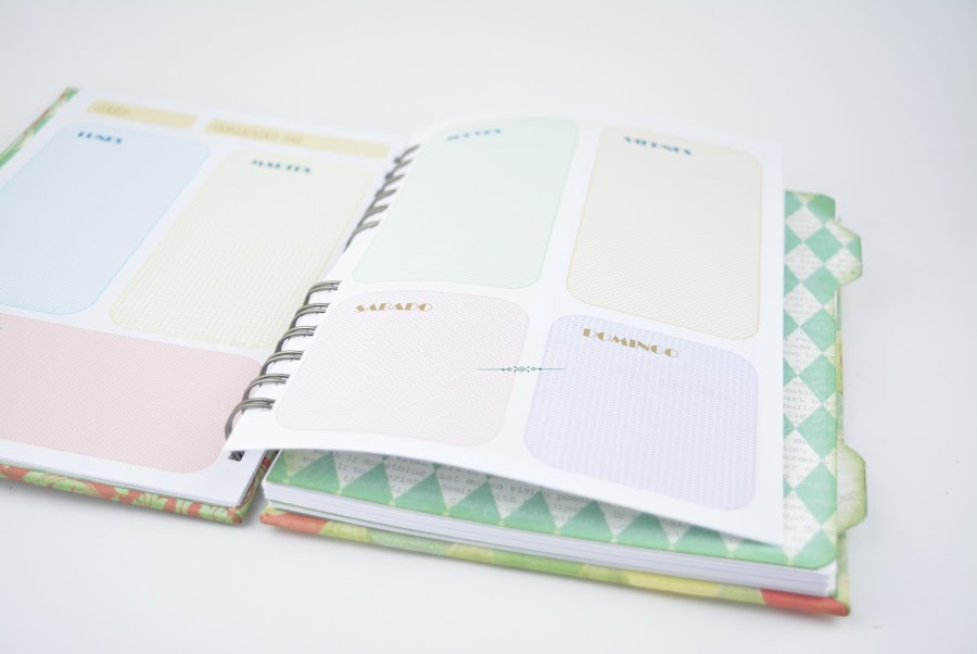 Es una agenda diferente, mitad agenda semanario y mitad Bullet Journal, que bien vale para cualquier año, ya que las páginas no tienen fecha prevista sino que se va poniendo a medida que avanza los días. Este es el apartado de semanario.