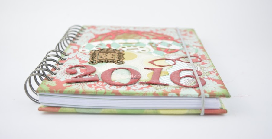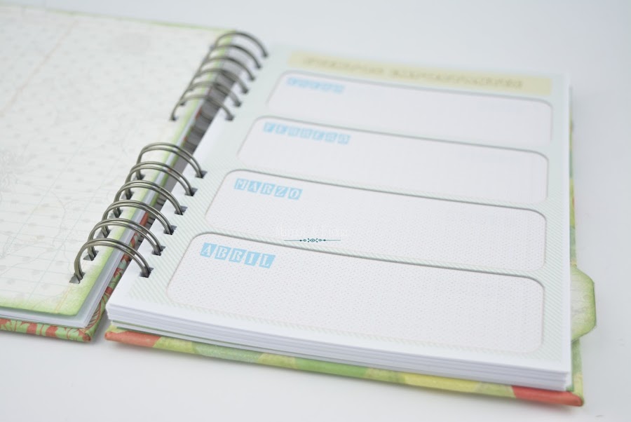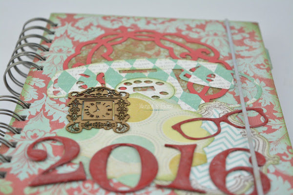 Es una agenda muy sencilla en el interior, a todo color eso si, y el exterior encuadernado en wire, y adornado con técnica de scrapbooking.