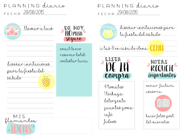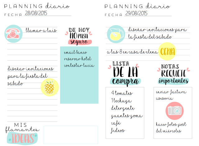 O dos ejemplos una vez de que hayamos rellenado nuestro organizador diario:
