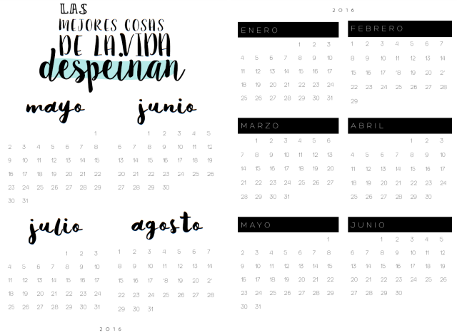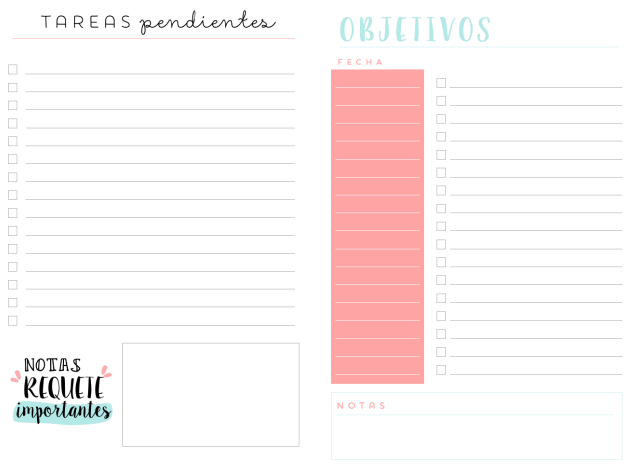 Lo único que tenemos que hacer realmente es pensar cómo nos gusta más a nosotras (por ejemplo a mí me gusta apuntar mis tareas verticalmente y me gusta tener meses con casillitas al comienzo) y después imprimir y encuadernar :)