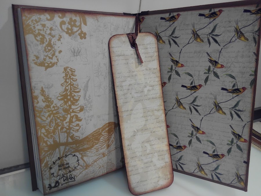 Os enseño lo último que he hecho: una agenda alterada para mi amiga Nuria. Le había comprado en secreto unos papeles de una colección que a ella le gustó mucho y andaba dando mil vueltas por las tiendas buscando agendas con anillas para quedarme con el interior y hacérsela yo desde cero. Pero ella misma me solucionó el quebradero cuando me dio una agenda que acababa de comprarse y me dijo: me la decoras? Se chafó la sorpresa... pero: al ataque!!