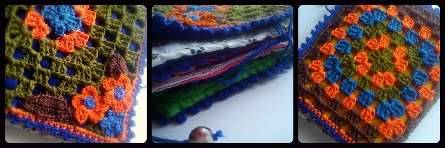 Y así comenzó el proceso creativo : fieltro,telas, hilos y ganchillo, botones, lazos y tiras bordadas por toda la mesa. Y crear. Este es el resultado