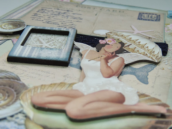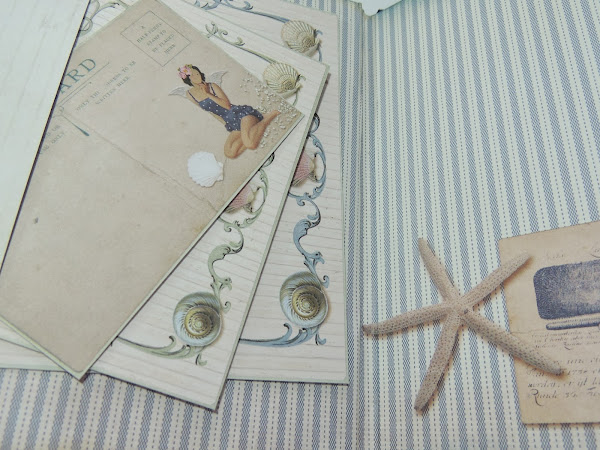 La muñequita Tilda, las conchas y las tarjetas postales pertenecen a esta misma colección.