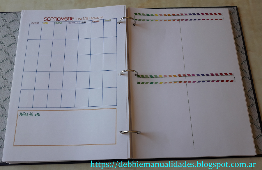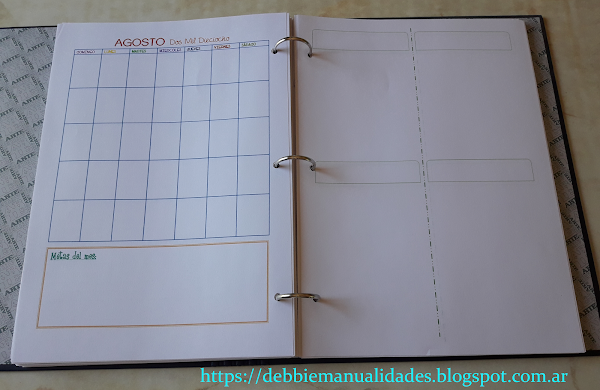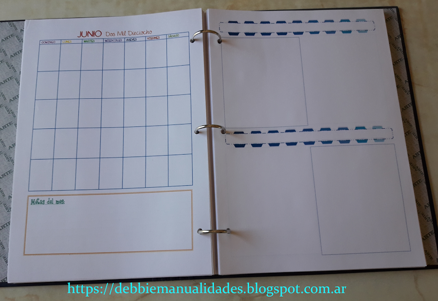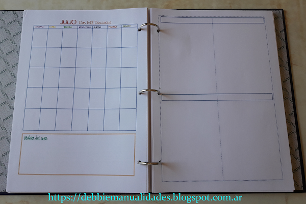 Y finalmente el registro de cada mes; inicia con una portada para el mes; detrás de ella un calendario mensual, para tener todo en un solo vistazo y después de eso vienen las hojas en donde haré los registros; pero como a veces pasan días sin que deba registrar algo, prefiero no ponerles la fecha impresa, pero si lo haré manuscrito.