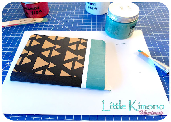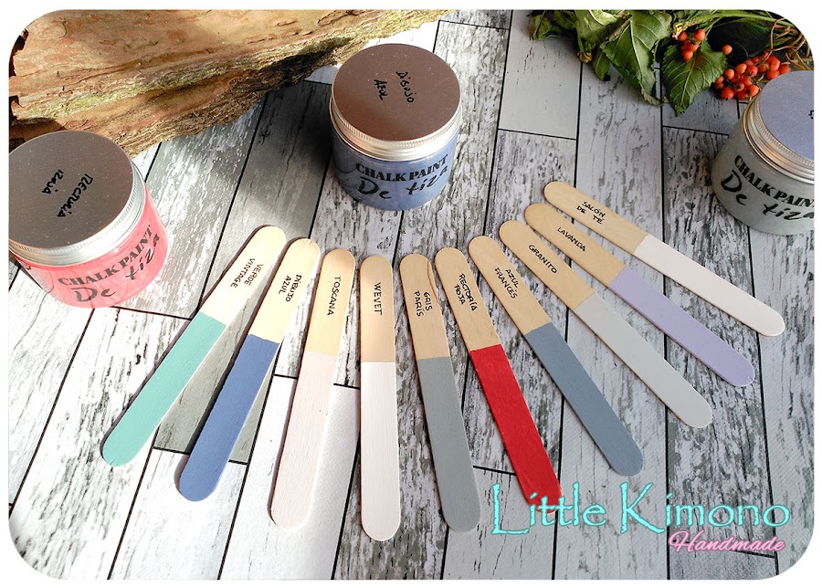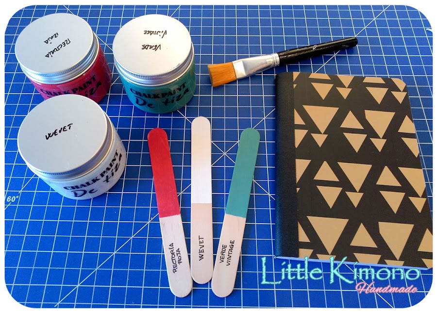La libreta está pintada con pinturas chalk paint cortesía de: "De Tiza" tienda online dedicada a la venta de su propia marca de pintura "Chalk Paint" y de cuyo kit de iniciación (que contiene: 10 latas a elegir de 250 mg. + 1 Brocha+ 1 Taco de lija) ya os he hablado en otras entradas ;) Lo hemos probado sobre madera, vidrio y hoy sobre cartón, aprovechad si aun no habéis pedido vuestro regalo de reyes que estos botes cunden un montón