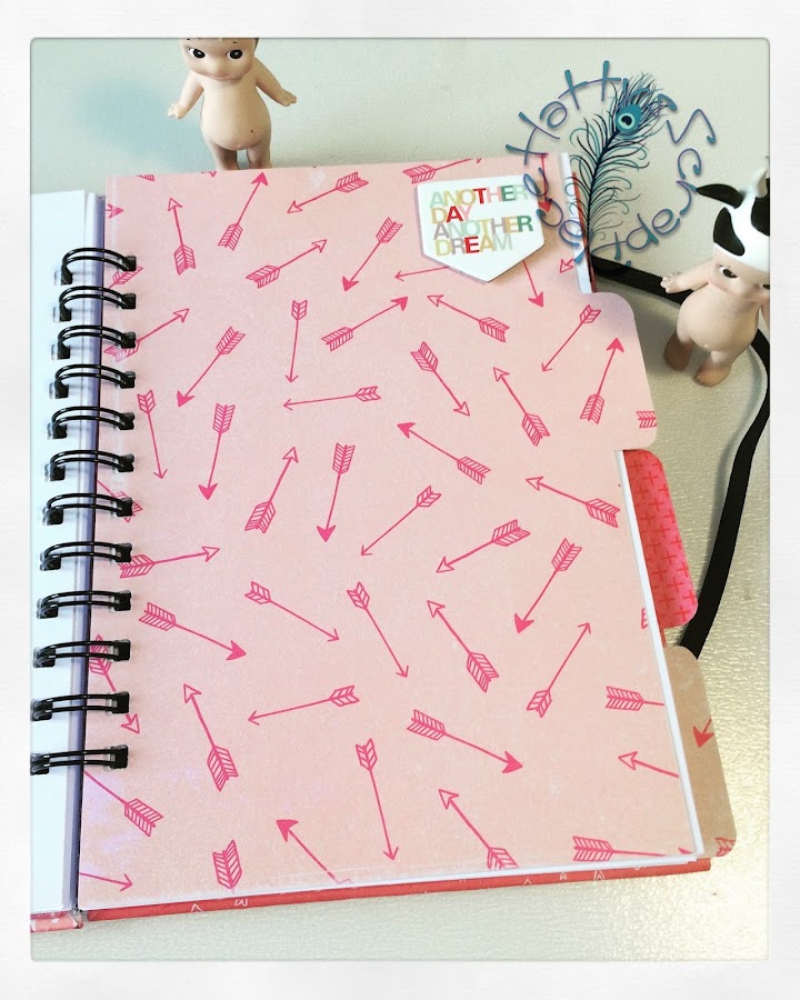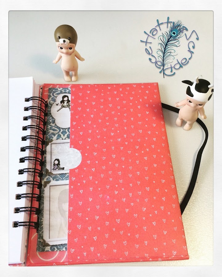 Para la agenda use papeles de la colección Hello Love de Create Paper del año pasado, tengo que dar salida a la cantidad de papeles muertos de la risa que se acumulan en mi scraproom y algunos stickers de la misma colección.