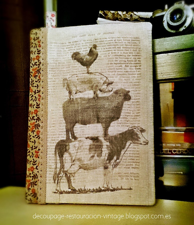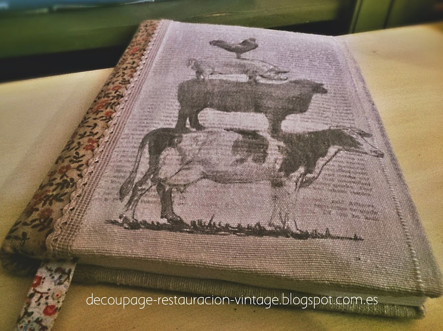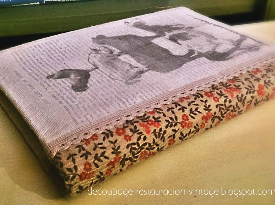 Para forrarla he usado una tela de lienzo a la que he transferido una imagen que me gustó.
