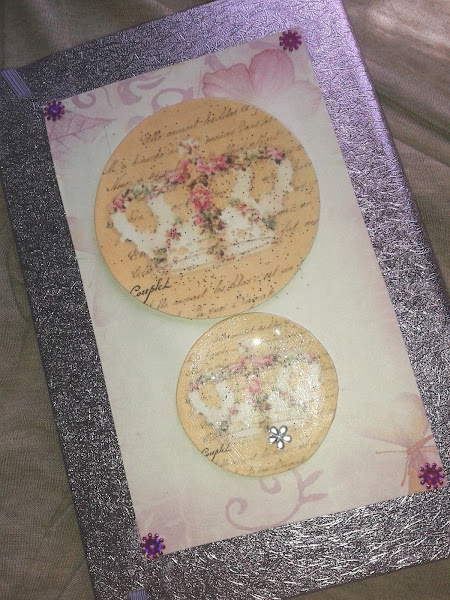 Contraportada con dos piezas en diferente tamaño. realizadas con la tecnica del decoupage y superpuestas en relieve.